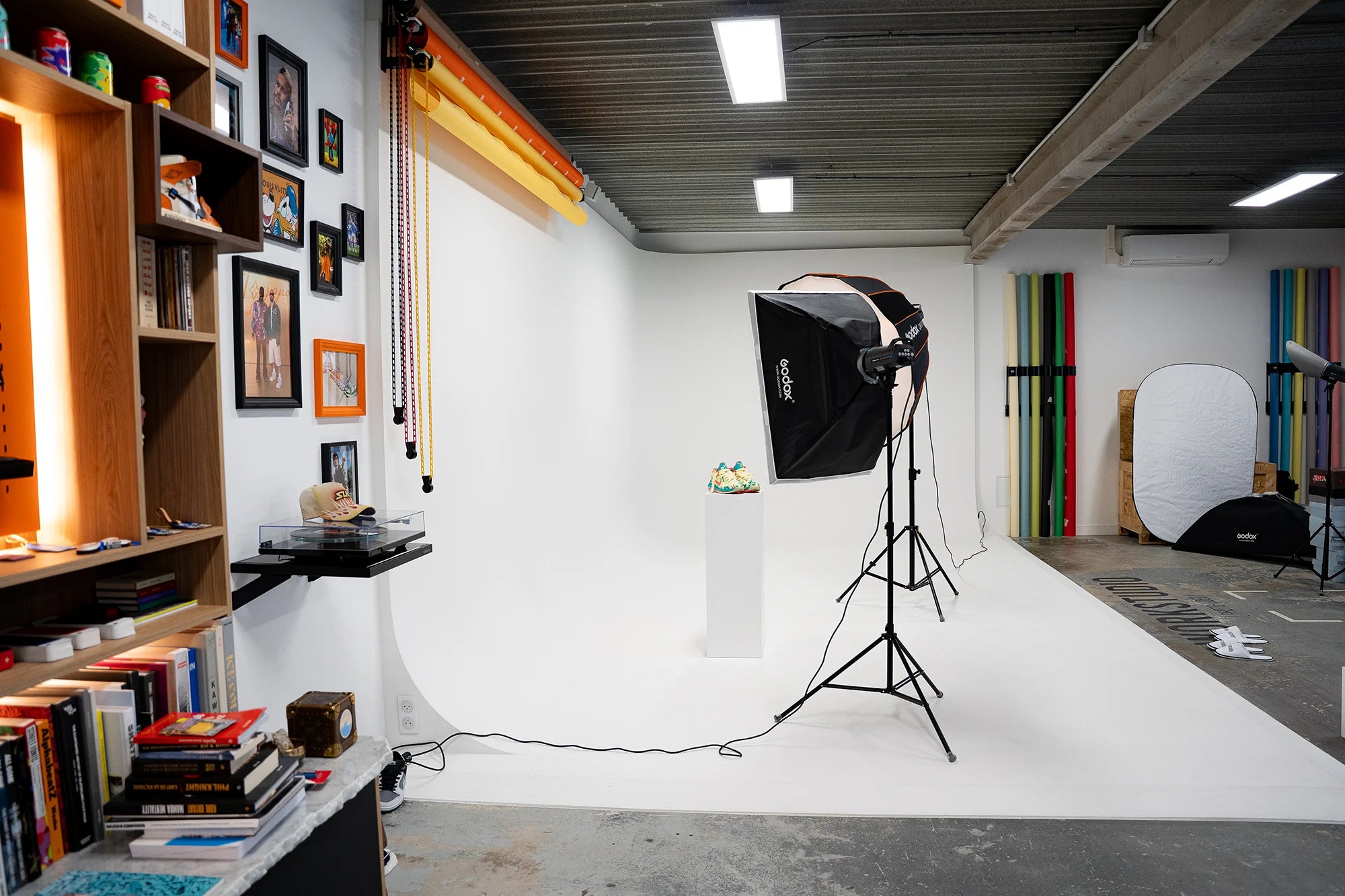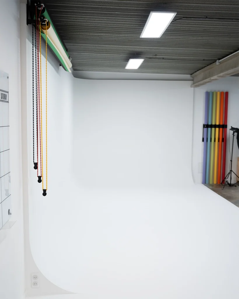 Situé à Nice, le Workbrand Studio offre un cyclorama de 30 m² (6,60 m x 4,60 m) et une zone de tournage d’environ 60 m², dans un environnement créatif et fonctionnel. L’espace a été pensé pour accueillir aussi bien les professionnels que les créateurs, marques et particuliers souhaitant réaliser leurs shootings ou tournages dans un cadre inspirant.